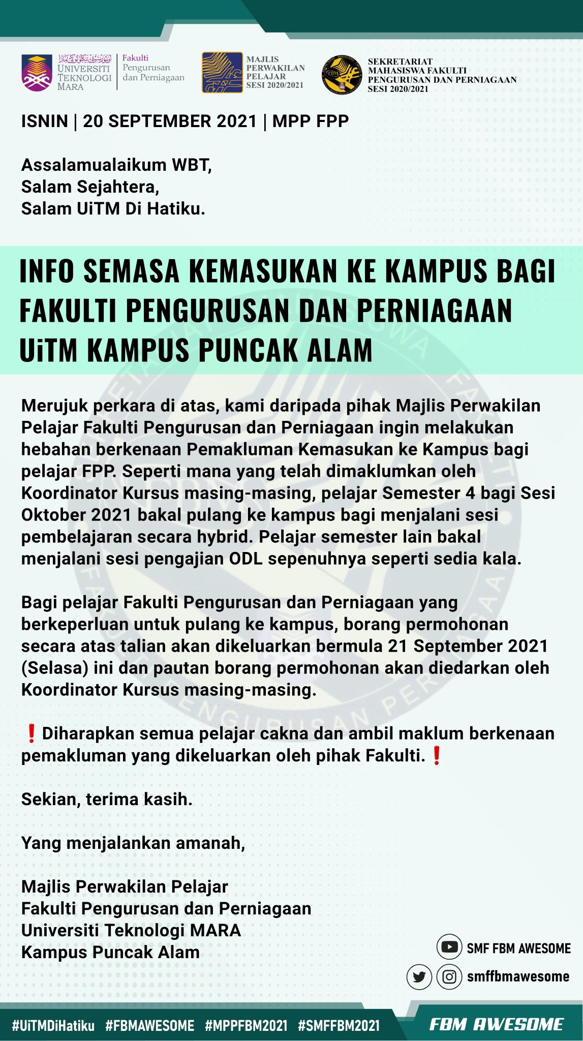 Transcilt Twitter पर Maklumat Terkini Berkaitan Kemasukan Kampus Perhatian Kepada Pelajar Uitm Berikut Adalah Maklumat Terkini Berkaitan Info Kemasukan Kampus Dan Permohonan Pulang Ke Kampus Uitmdihatiku Transciltuitm Fbmawesome Https